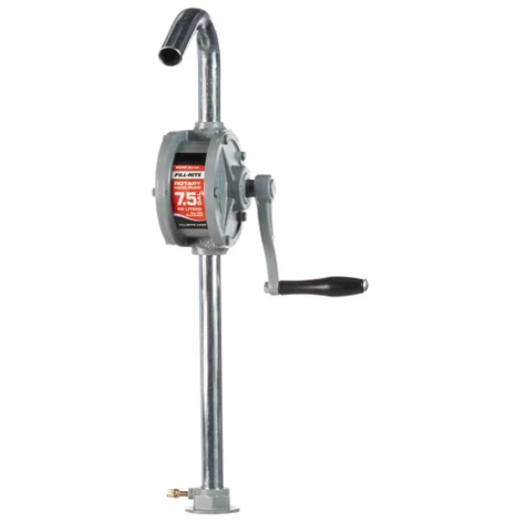 The Fill-Rite Standard Duty Rotary Hand Pump is made of rugged cast iron construction. With a transfer rate up to 7.5 gallons per 100 revolutions, this economical solution is ideal for low volume fluid transfer. This unit can easily transfer diesel, kerosene, machine oil, fuel oil. Includes suction pipe and pail spout.